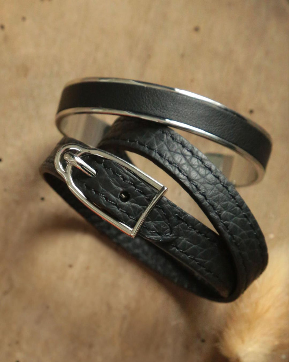 The Derby bracelet is a double-turn bracelet made of Vigogne-style cowhide and fastened with a stirrup buckle. A timeless piece!